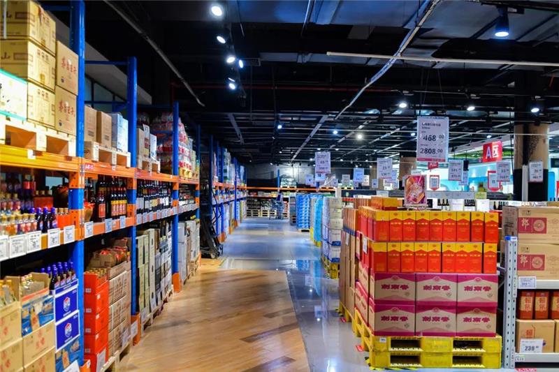 超市的布局分為酒水飲料區(qū)、生鮮食品,烘焙區(qū)、肉類海鮮區(qū)、休閑食品區(qū)、日用百貨等,擺放有序,品類齊全,一站式可以滿足家庭所需。