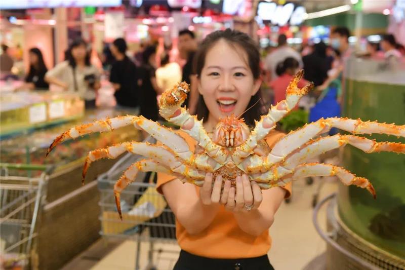 繼續(xù)往前走就是生鮮區(qū),各種生猛海鮮隨便挑。