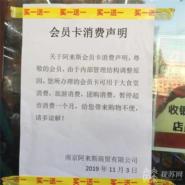 記者了解到,11月3日這家生鮮超市曾經(jīng)貼出一則會員停用通知,上面寫道:阿來斯資金鏈斷裂不與超市結賬,負責人不露面解決問題,所有會員暫停使用,等阿來斯負責人陶某露面解決賬務問題再另行協(xié)商。阿來斯商貿(mào)公司負責人陶某告訴我蘇特報記者,超市突然關門是因為公司與承包商出現(xiàn)了糾紛。