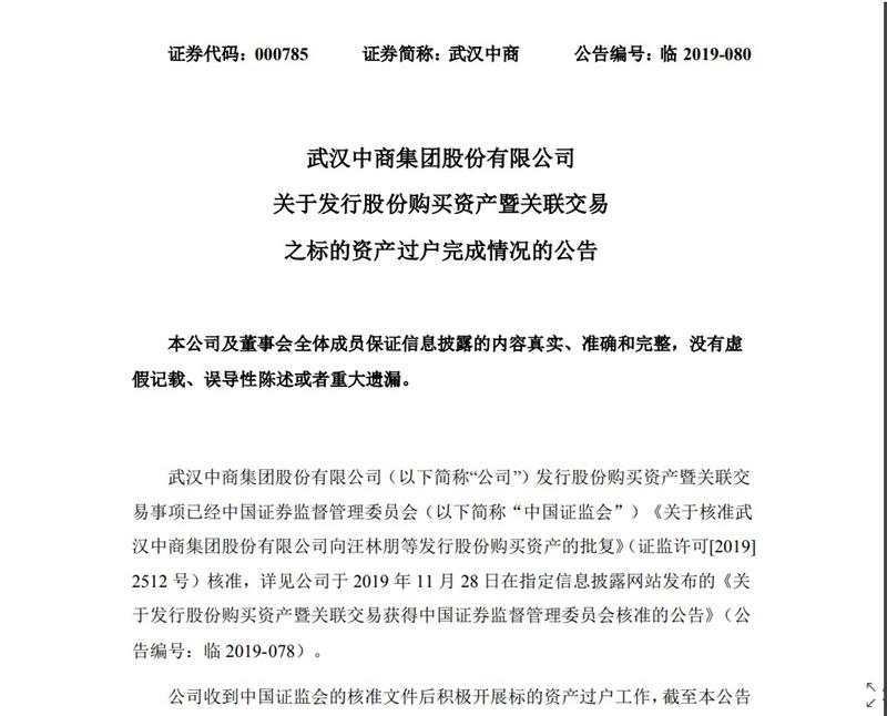 12月6日消息,《電商報》獲悉,12月5日,武漢中商集團(tuán)股份有限公司發(fā)布公告,宣布居然新零售100%股權(quán)的過戶手續(xù)及相關(guān)工商變更備案登記已完成,居然新零售已成為其全資子公司。