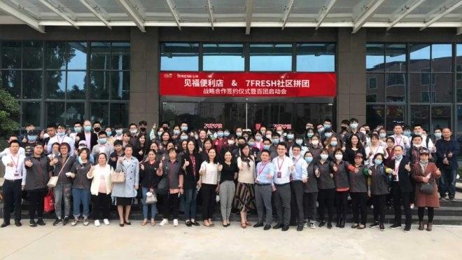 ▲見福便利店&7FRESH社區(qū)拼團戰(zhàn)略合作簽約儀式
