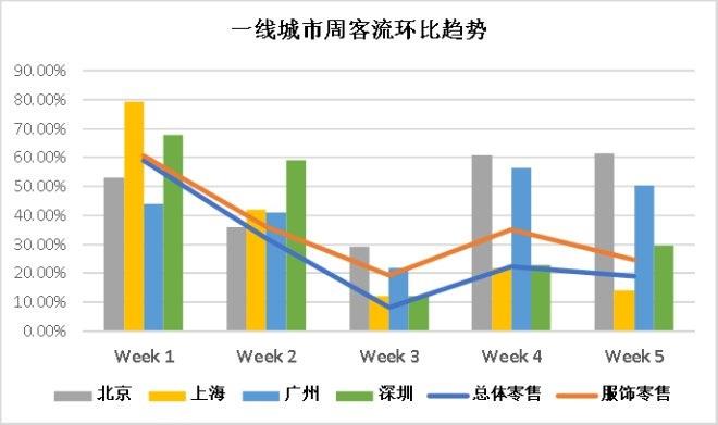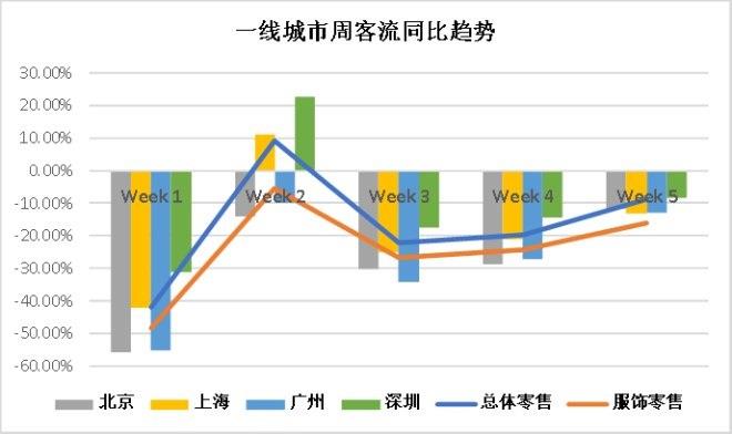 一線城市周客流表現(xiàn)