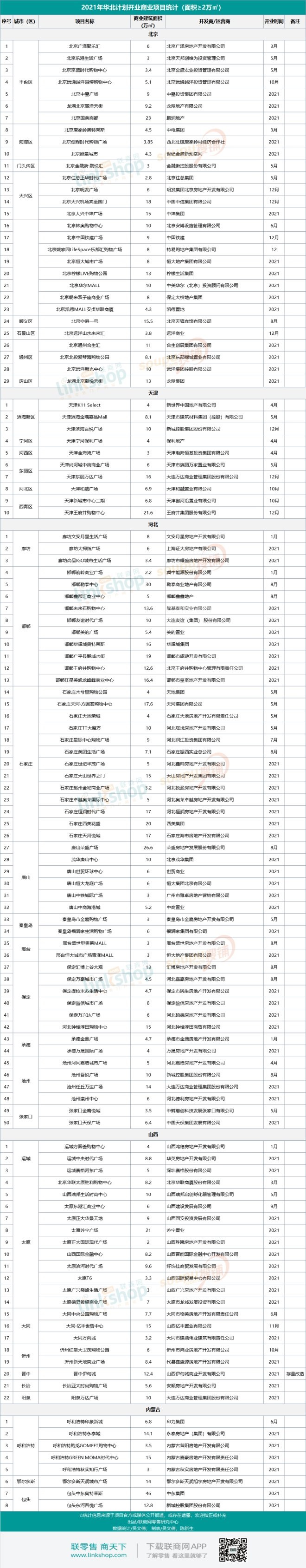 附:2021年華北地區(qū)擬開業(yè)商業(yè)項目統(tǒng)計表
