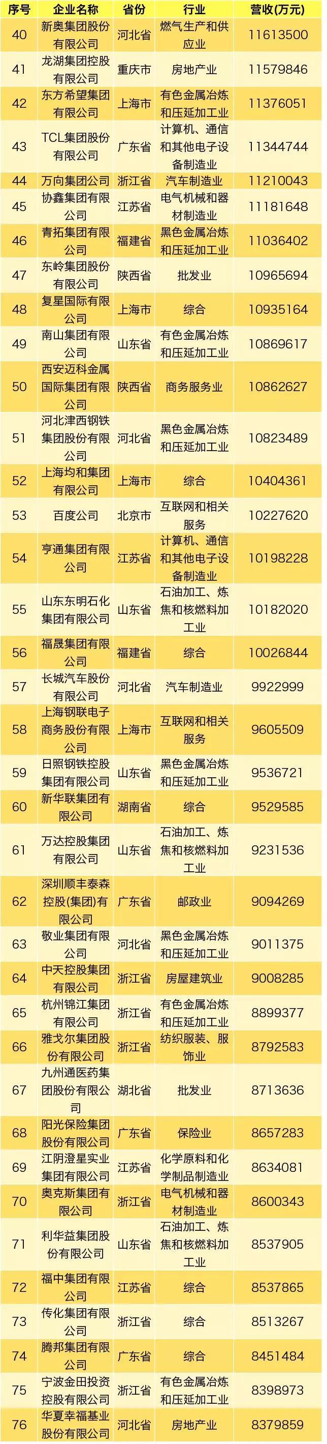 此外,今年有20家民企500強入圍世界500強,比上年增加3家。 而與去年相比,有 85 家 企業(yè)新進(jìn)入榜單。