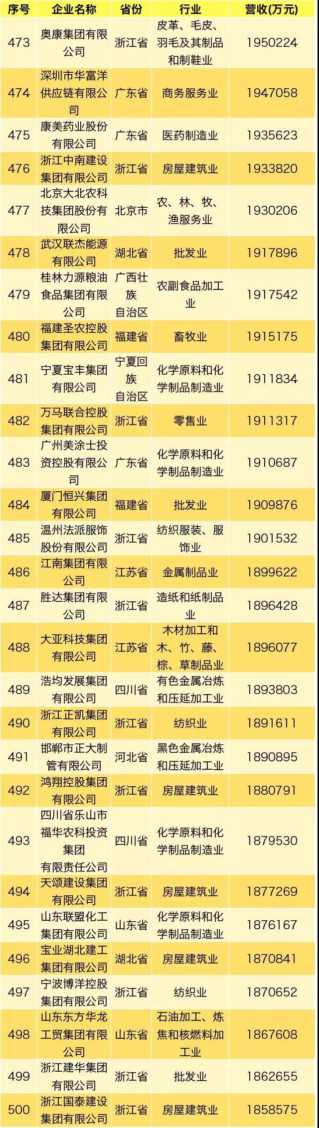 剛剛,大會對外發(fā)布了2019“中國民營企業(yè)500強”、“中國民營企業(yè)制造業(yè)500強”、“中國民營企業(yè)服務(wù)業(yè)100強”和《中國民營企業(yè)500強調(diào)研分析報告》。