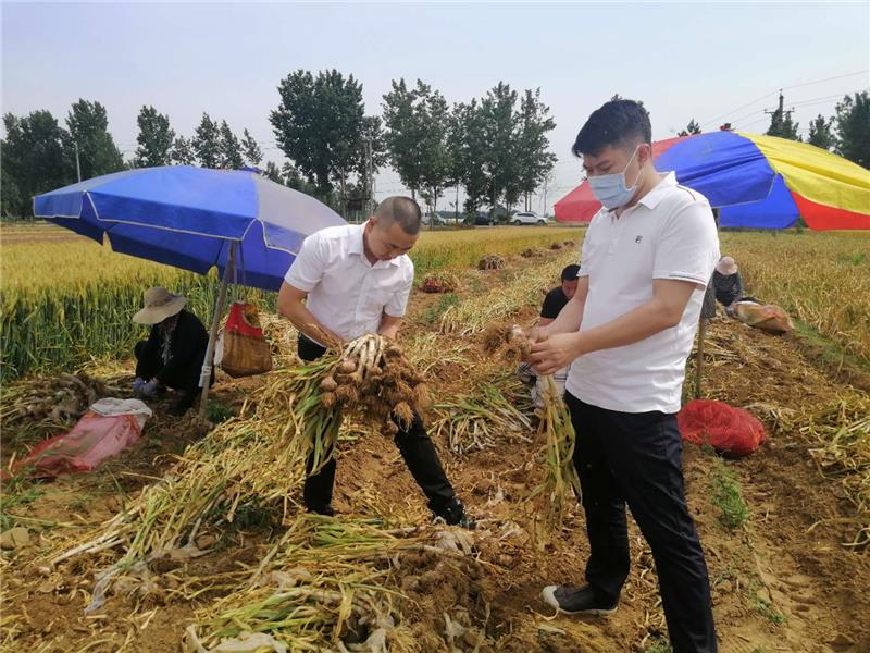 5月21日,河南永輝超市生鮮采購(gòu)負(fù)責(zé)人席晨杰、蔬菜采購(gòu)負(fù)責(zé)人曹吉祥驅(qū)車來到距離公司50公里外的中牟縣,幫助這里蒜農(nóng)解決滯銷在田間地頭的大蒜。