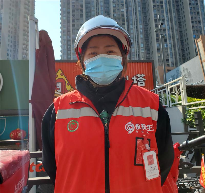 就職于永輝福州市公園道倉的周亞妹,是位并不多見的女性配送員。這個春節(jié),她同樣選擇了留守。從早上6點到晚上8點,連續(xù)工作的七天,她也只在除夕當晚提前了半小時下班。