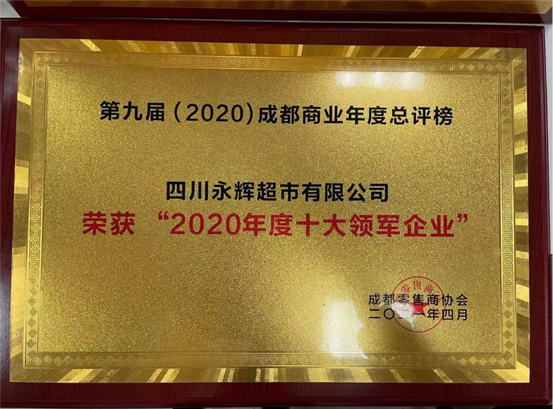 2021年4月14日,成都零售商協(xié)會(huì)舉行第九屆(2020)成都商業(yè)年度總評(píng)榜頒獎(jiǎng)儀式。四川永輝超市有限公司榮獲 2020年度十大領(lǐng)軍企業(yè)”稱號(hào)。
