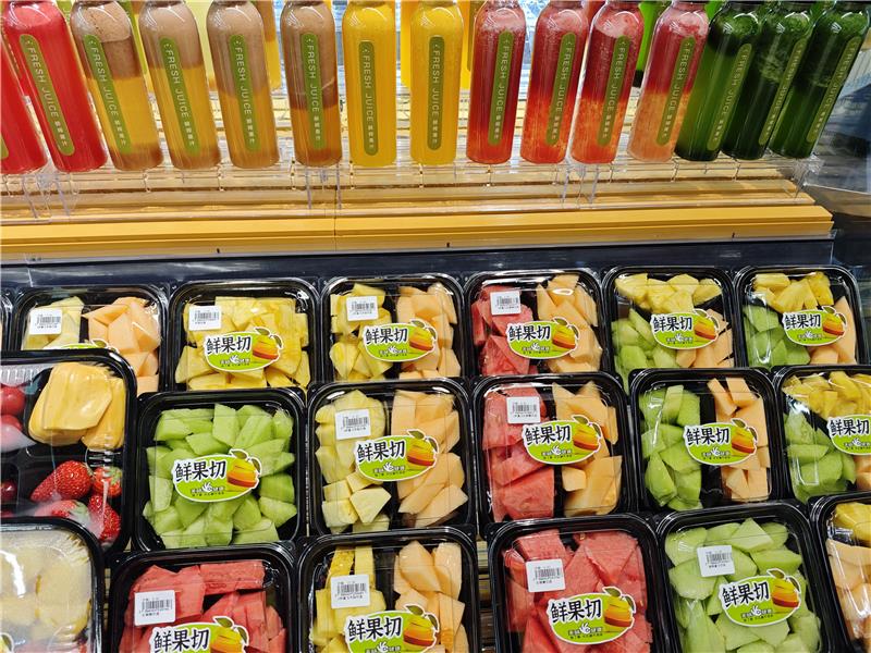 門店服務(wù)同步進行了更高標(biāo)準(zhǔn)的提升,如水果區(qū)增加了鮮果現(xiàn)切、現(xiàn)榨果汁等服務(wù);肉禽區(qū)對既有的加工操作間進行了設(shè)備升級,增加了切絲、切片、絞肉餡等更細(xì)致的服務(wù);同時,門店內(nèi)也秉持“以客戶為中心“的原則,為消費者提供了包括休息區(qū)、飲水區(qū)、充電站、免費食品加熱、免費醫(yī)藥箱在內(nèi)的生活配套體驗區(qū)。