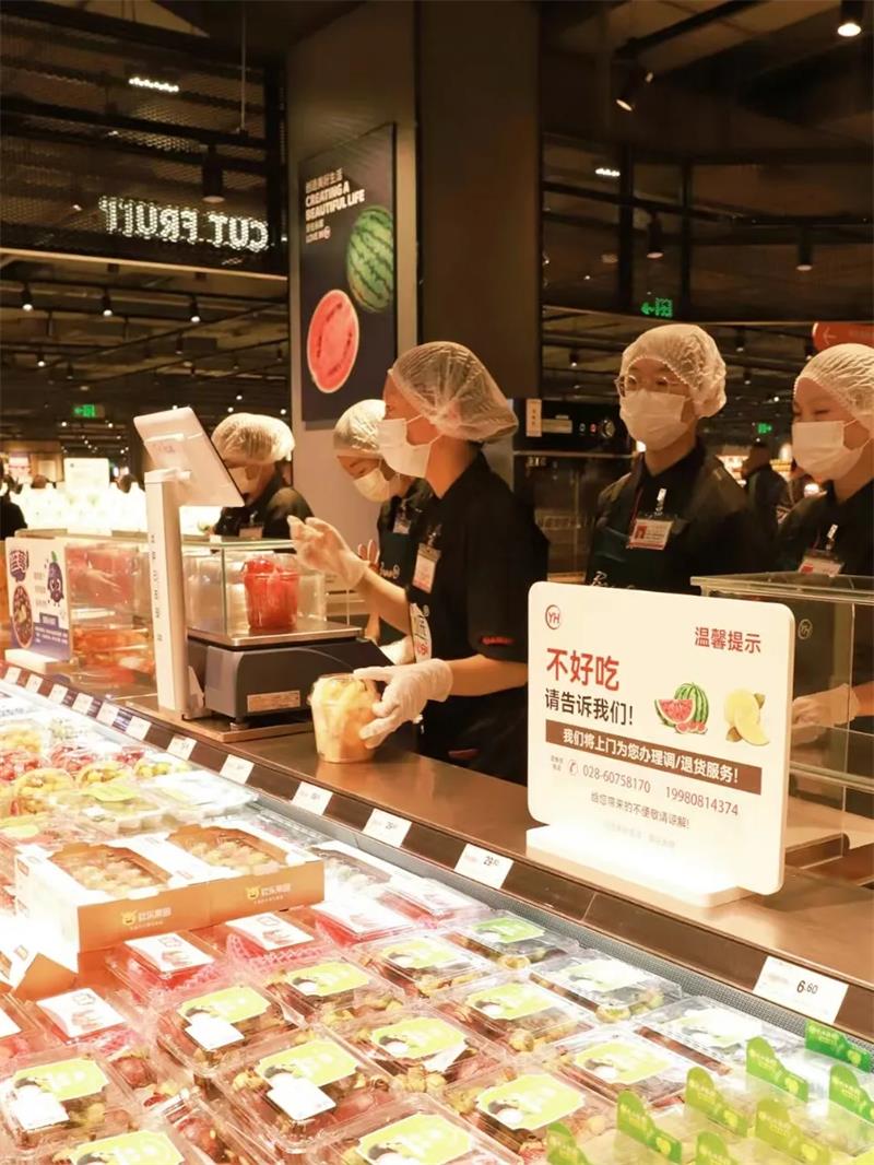 我們過去一直強調(diào)的日清原則正在被各家調(diào)改店嚴格執(zhí)行。果切嚴格遵守468折價原則,超過4小時八折銷售,超過6小時六折銷售,超過8小時直接下架報損。葉菜、肉禽、水產(chǎn)等部分商品也會根據(jù)當天實際情況做日清折價,此保證商品的新鮮度及口感。