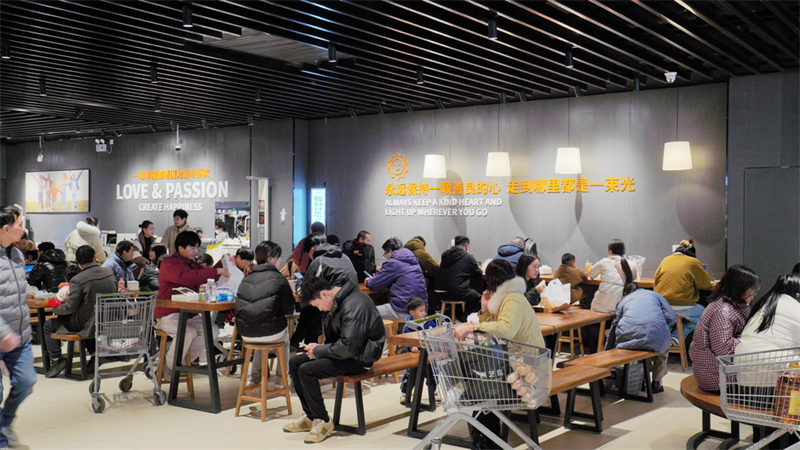 “我以前就是這家超市的???,沒想到調(diào)改后變化這么大。現(xiàn)在熟食產(chǎn)品種類很多,不想做飯來這邊買點(diǎn)現(xiàn)成的,買完單在顧客休息區(qū)就可以用餐,方便了很多。”剛剛下班的張女士一邊挑選商品一邊說。而永輝超市新增的顧客休息區(qū)坐滿了用餐和休息的顧客,休息區(qū)里洗手池、濕紙巾、直飲水、一次性水杯、血壓計、身高體重測量儀等便民設(shè)施一應(yīng)俱全,除了用餐的顧客,也有不少顧客在休息區(qū)量身高體重、測血壓。